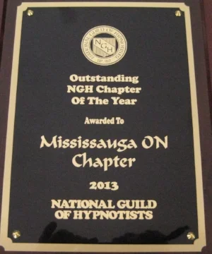 The Mississauga NGH Chapter was voted Outstanding NGH Chapter of 2013 by the national Board of Directors of NGH and presented with a plaque at the NGH Summer Learning Institute and Annual Convention at the awards banquet in Marlborough, Mass., on August 10th, 2013, attended by nearly 900 Consulting Hypnotists.